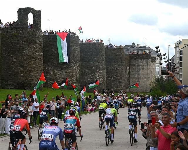 Protesta pro palestina en la Vuelta ciclista a su paso por Lugo